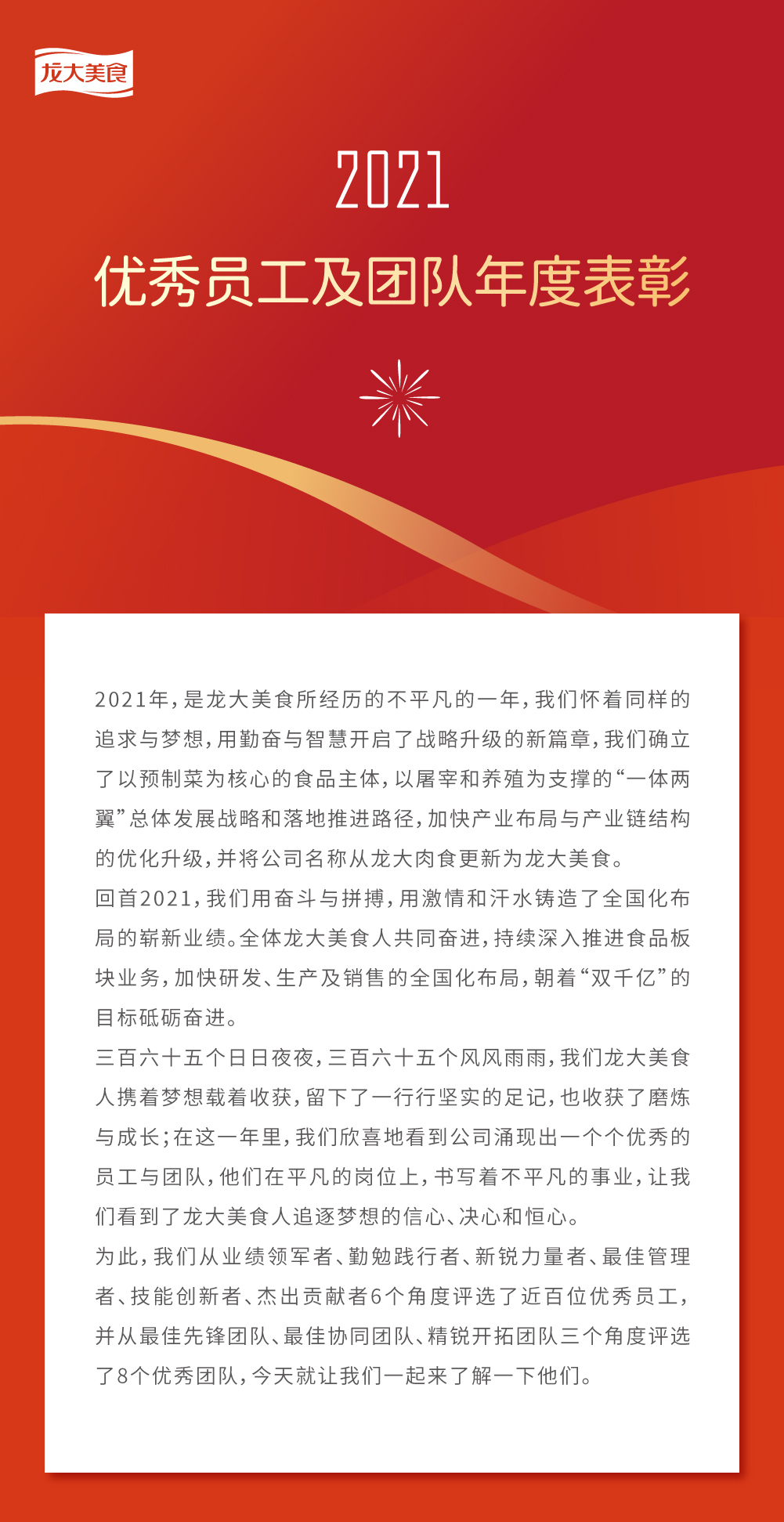 【緻敬奮鬥者】龍大美食2021年度優秀員工(gōng)及團隊表彰正式發布!